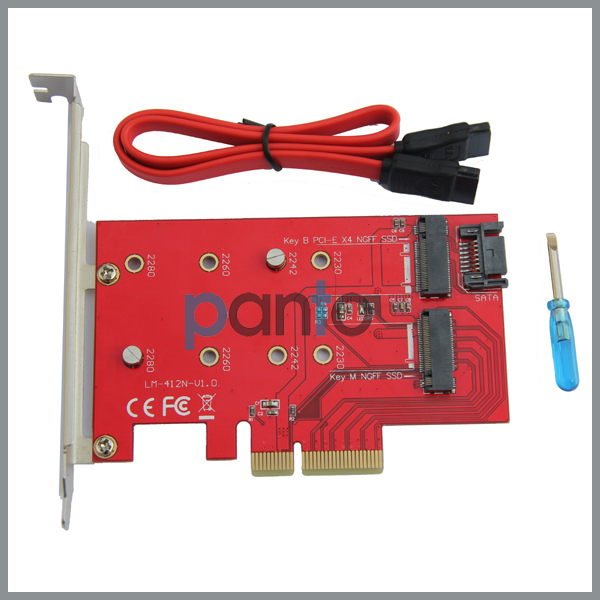 Connects one B key & one M key NGFF SSD at the same time to PCI-E 4X motherboard.